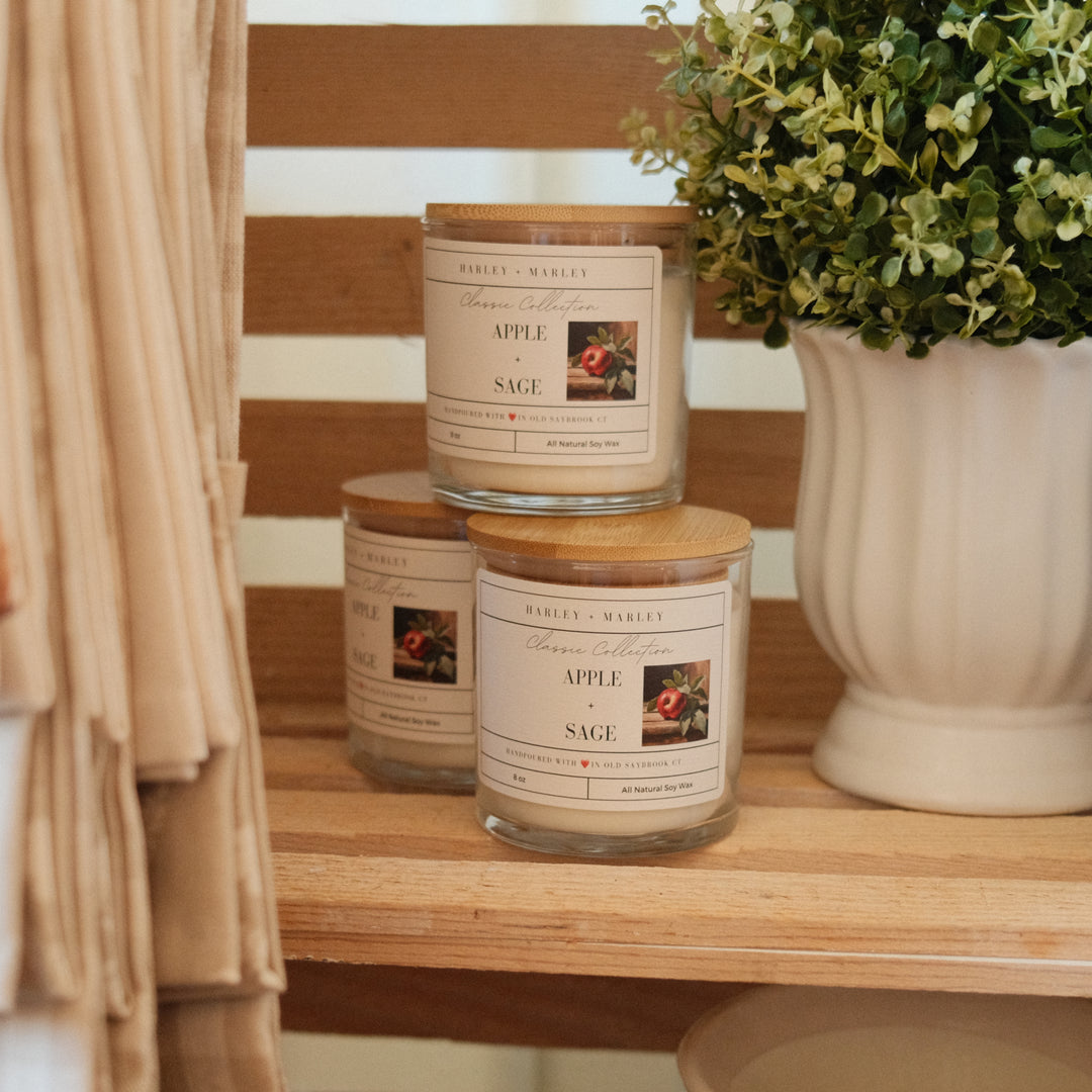 Each of our candles is hand-poured with love right here in Essex, CT. Made with 100% soy wax, our candles are free of parabens, phthalates, dyes, and paraffin, and we use only cotton wicks that are lead- and zinc-free for a clean, eco-friendly burn.